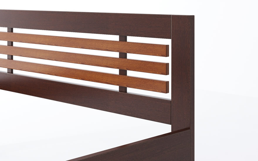 • Ліжко "Лантана Дуб" - дерев'яне ліжко прямих, чітких ліній, без ізніжжя. Ізголів'я ліжка являє собою поєднання вузьких горизонтальних планок, вставлених в широку рамку.