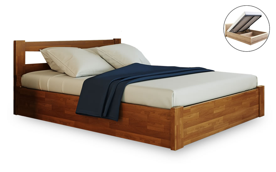 Эта модель привлекла тем, что нет в ней ничего лишнего. Даже удобно то, что нет ножек, на которых обычно стоят кровати. А под матрасом можно сложить плед, одеяло и т.п., благодаря подъёмному механизму. Всё продумано. Удобно и качественно. Изготовили кровать из натуральной древесины.Сразу заказала матрац и подушки - всем довольна.
