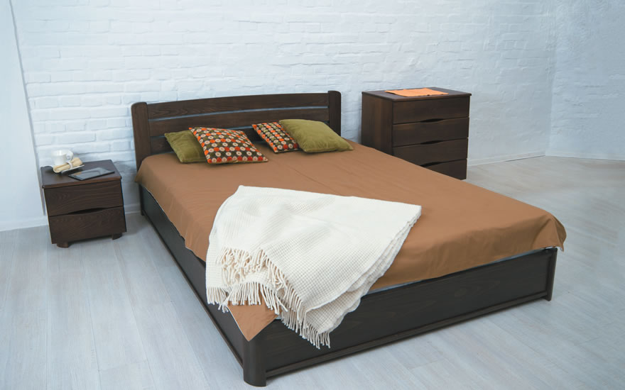 Ізглів’я і кутові елементи ліжка виконані з букового щита, царги і ізніжжя - з букового щита і МДФ в шпоні бука.