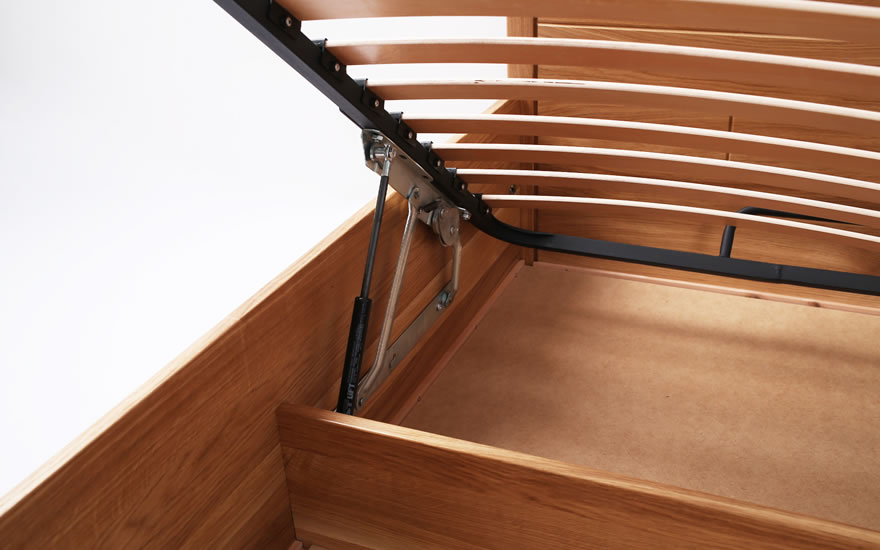 Головною перевагою ліжка є наявність підйомного механізму. ЛАУРО укомплектоване металевою рамою з буковими ортопедичними ламелями. Рама підіймається й утримується надійним підйомним механізмом. Він дає змогу користуватися чималим містким підламельним ящиком.