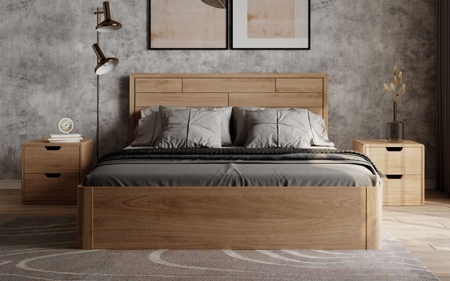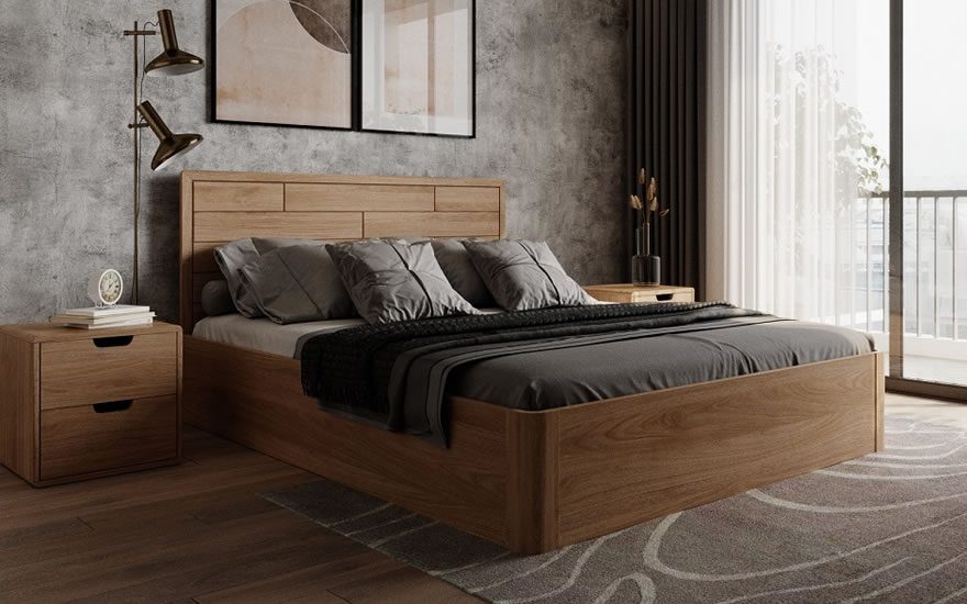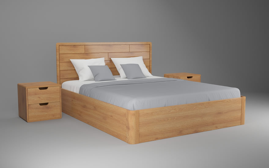 Ліжко Лауро виготовлене з масиву лише міцних порід дерева – ясеня чи дуба (більш м’яка порода, наприклад вільха, − не підходить). Узголів’я – суцільний масив натурального дерева, з простим, цікавим, геометричним малюнком у вигляді цеглинок.
