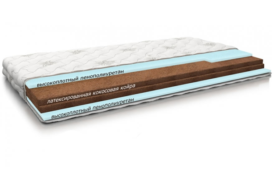 Латексоване кокосове волокно - натуральний гіпоалергенний екологічно чистий наповнювач - гарантує кращі ортопедичні і анатомічні властивості, забезпечує хорошу циркуляцію повітря і легке просушування. Тонкий шар пінополіуретану по обидва боки кокосового блоку створює додатковий комфорт. Матрац - Протизадушний, гіпоалергенний, екологічно чистий.