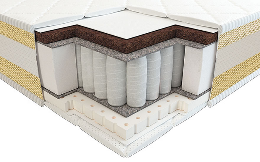 Латексована кокосова койра - натруальний природний матеріал, що володіє еластичністю і повітропроникністю, характеризується довговічністю, стійкістю до деформацій і високих навантажень. Використовується для збільшення жорсткості поверхні матраца.