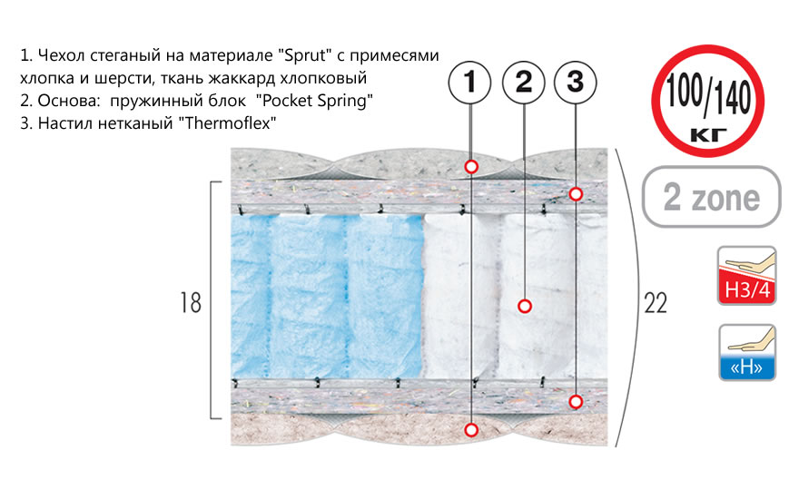 Добрый день. Подскажите, в описании сказано, что есть две зоны жесткости. На фото не видно разграничение зон. Можете объяснить где разграничивается?