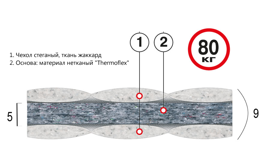 Чохол матраца жаккард, стьобаний на об'ємному наповнювачі з волокнами бавовни - «Sprut» ©. Це об'ємний нетканий волокнистий матеріал, який відрізняється здатністю збільшувати ефект пружності і довговічності поверхонь матраца.