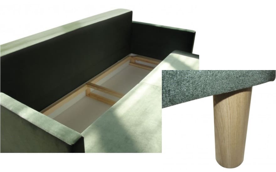 Диван может быть обит износостойкой тканью/экокожей. Есть возможность комбинации тканей.