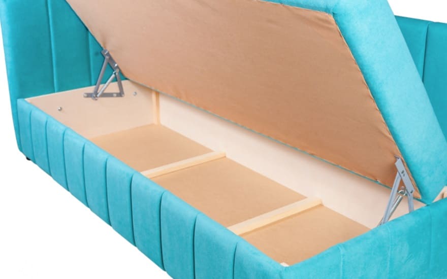 Практичности модели добавляет наличие ламинированного короба для хранения белья из ДСП. Механизм "Алигатор".