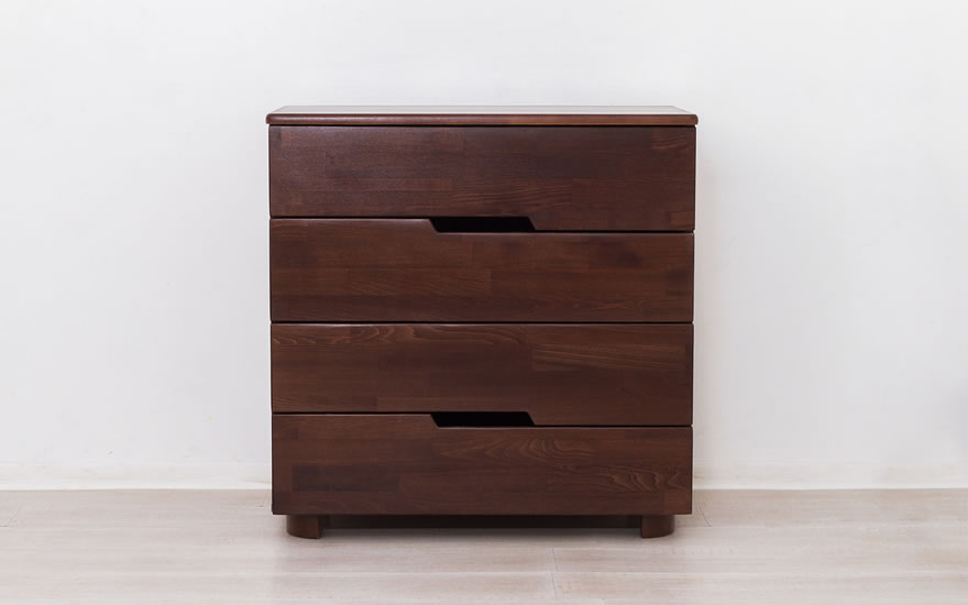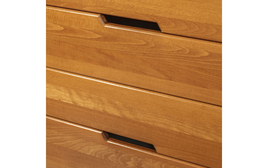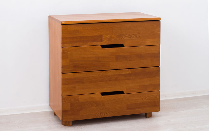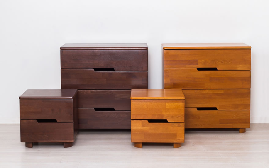 Столешница и фасады ящиков выполнены из букового щита, боковые части тумбочки - МДФ в шпоне бука, ножки - массив бука, задняя стенка - ДВП, дно - ДСП