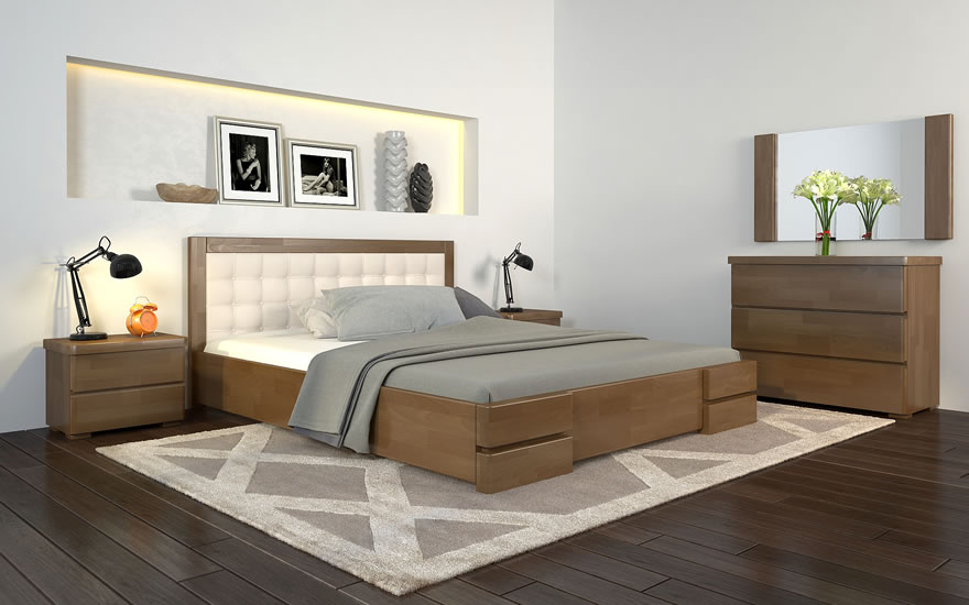 Фабрика производитель деревянных кроватей с мягким изголовьем Woodsoft