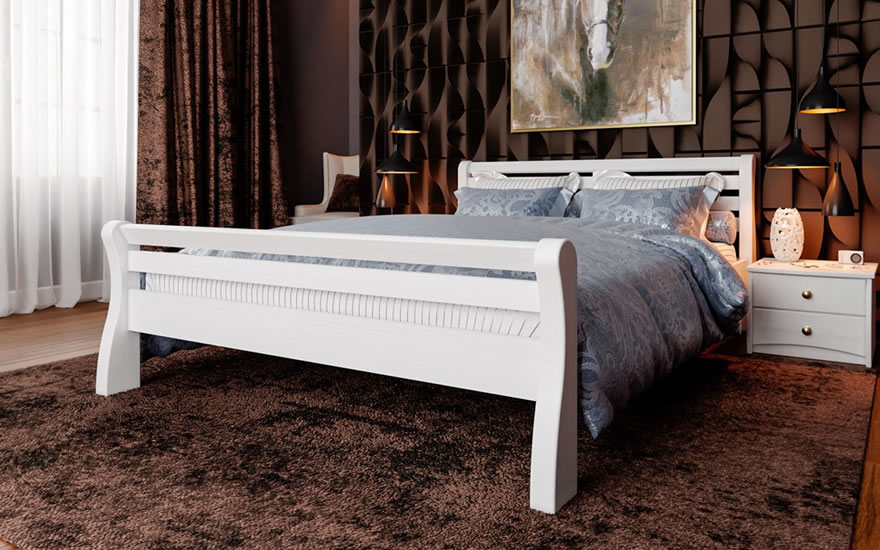 Кровать выполнена из щита ольхи, а в качестве покрытия используются специальные мебельные полиуретановые лаки итальянского производства.