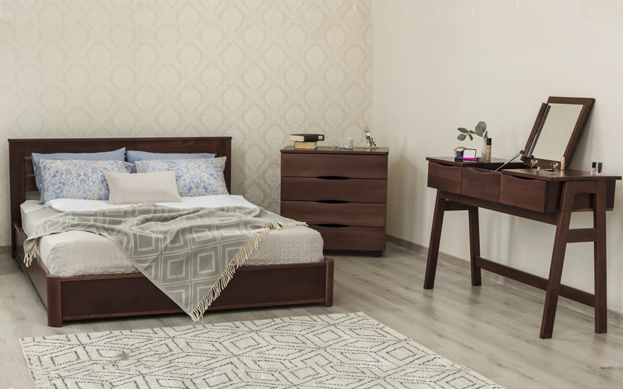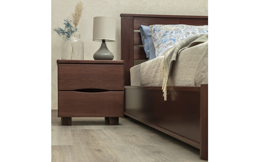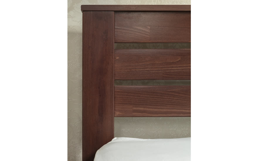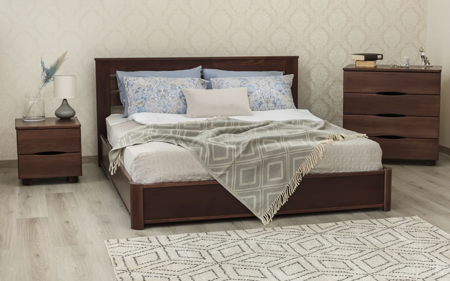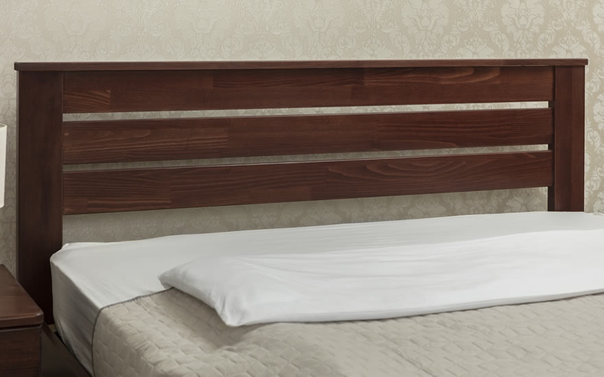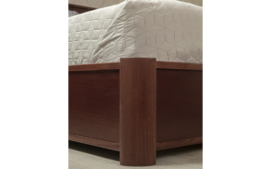 Изгловье и угловые элементы кровати выполнены из букового щита, царги и изножье - из букового щита и МДФ в шпоне бука.
