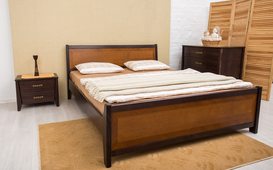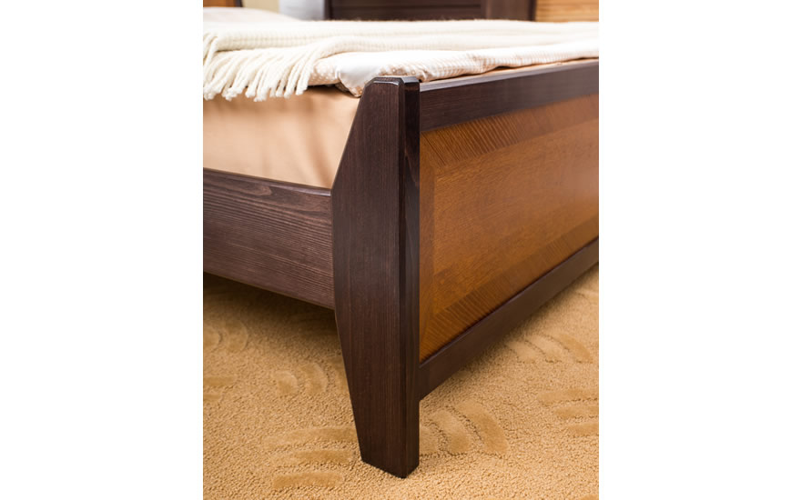 Высокие изголовье и изножье с другой текстурой дерева и цвета делают эту кровать настоящим произведением искусства.