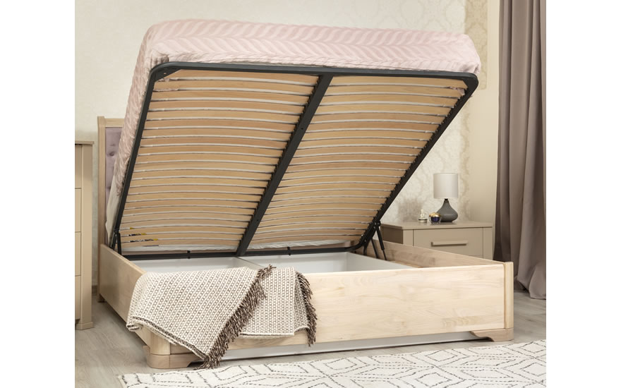 Кровать оснащена подъемным механизмом с газлифтом 1200N. Допустимый вес матраса для оптимизации нагрузки на газлифт - не более 50 кг