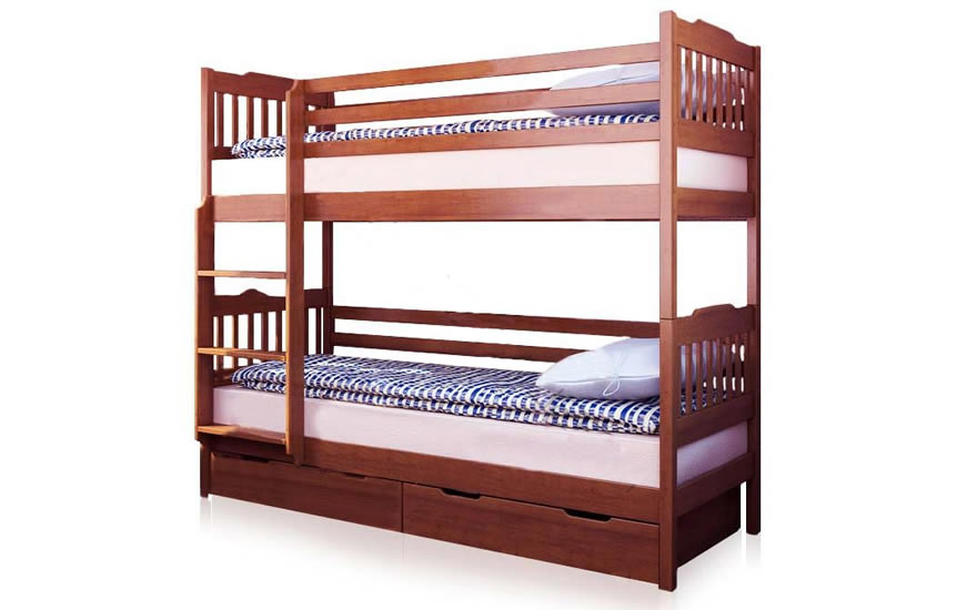 • Двухъярусная кровать "Ева" - кровать-трансформер, которая легко разбирается на две полноценные односпальные кровати. Это очень удобно и экономично, ведь по мере взросления детей не придется покупать новые кровати. Кровать очень компактна и функциональна - в комплект кровати входят два выдвижных вместительных ящика для белья, что помогает правильно организовать пространство комнаты поддерживать идеальный порядок.