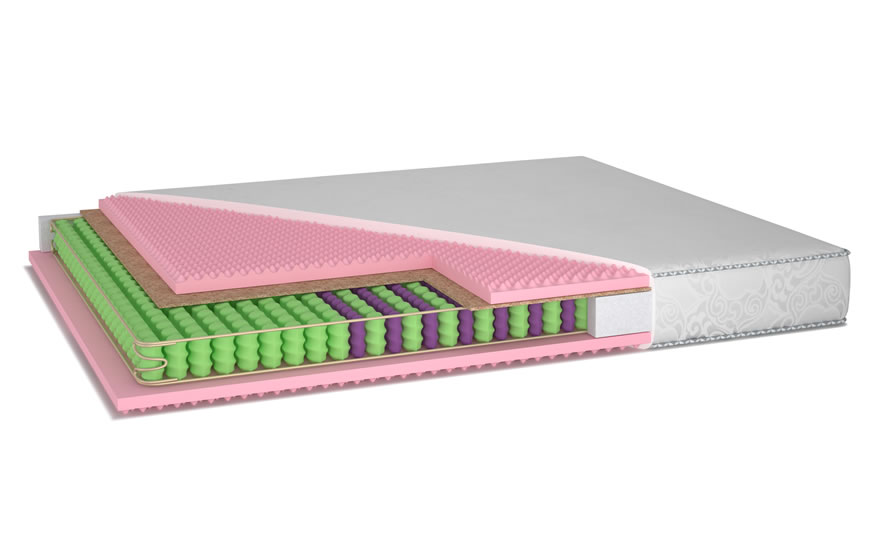 Латексированная кокосовая койра — натруальный природный материал, обладающий эластичностью и воздухопроницаемостью, характеризуется долговечностью, стойкостью к деформациям и высоким нагрузкам. Используется  для увеличения жесткости поверхности матраса.