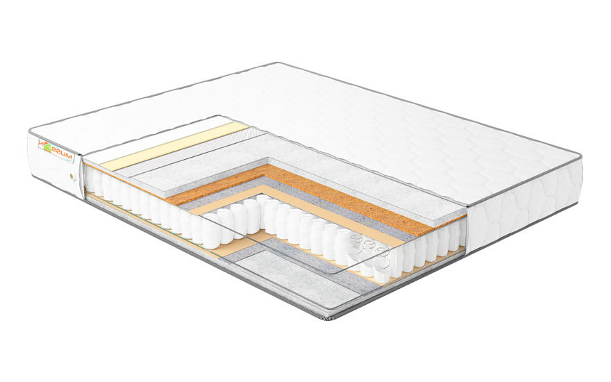 Латексированная кокосовая койра — натруальный природный материал, обладающий эластичностью и воздухопроницаемостью, характеризуется долговечностью, стойкостью к деформациям и высоким нагрузкам. Используется  для увеличения жесткости поверхности матраса.