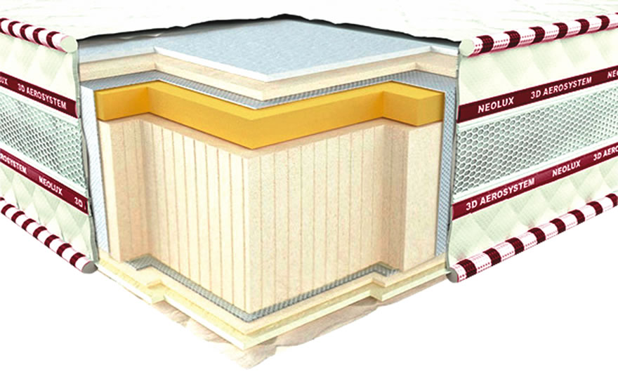 Latexform придает изделию непревзойденную мягкость и комфорт, а пена Memory с эффектом «памяти», способна принимать форму тела человека и «запоминать» ее, создавая неповторимое ощущение комфорта. Реагируя на температуру тела, он становится мягче там, где происходит более плотное прилегание, и жестче там, где нет сильного прилегания. Таким образом, туловище поддерживается в анатомически правильном положении и достигается максимальное расслабление мышц.