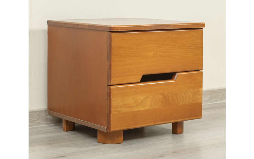 Столешница и фасады ящиков выполнены из букового щита, боковые части тумбочки - МДФ в шпоне бука, задняя стенка - ДВП, дно - ДСП
