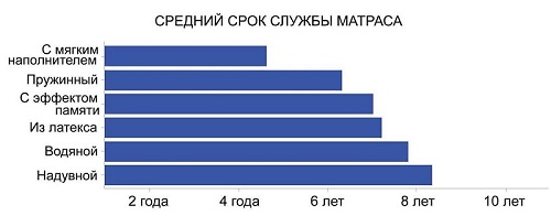 Средняя продолжительность «жизни» ортопедического матраса от 6 до 10 лет, в зависимости от выбранного материала.