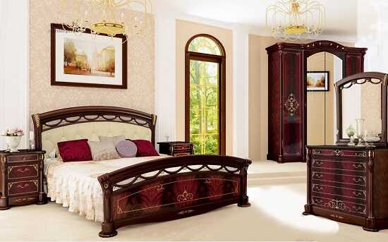 Також до прикладів нестандартних ліжок в класичному стилі, можна віднести модель «Олімпія» в кольорі червоного дерева. Двоспальне ліжко відповідає нормам сучасного класичного стилю: плавні форми, різьблення в узголів'ї, витончені ніжки і звичайно ж розкішний дизайн, при цьому її колір досить нетиповий для класики, але це зовсім не завадило «Олімпії» зайняти почесне місце в інтер'єрі класичної спальні!