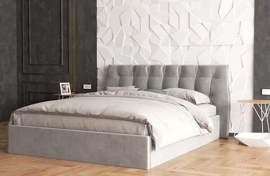 ліжко Elio. Модель світло-сірого кольору чудово інтегрувалася в інтер'єр з нотками сучасного лофту і перевіреної класики.