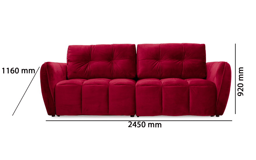 Диван декорований студійною об'ємною стьобкою квадратом, що додає моделі особливої привабливості та шарму.