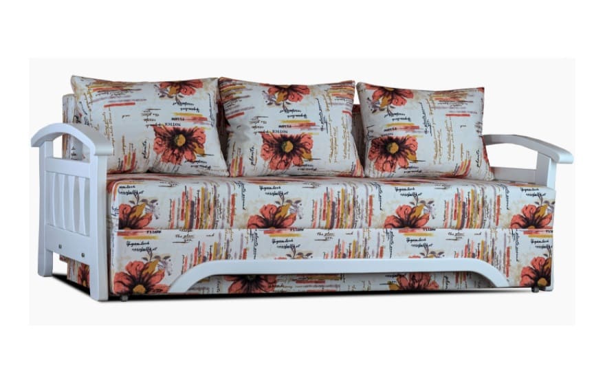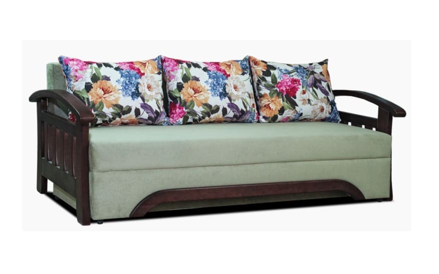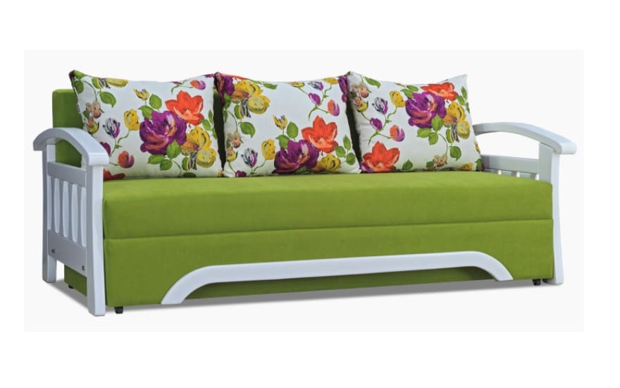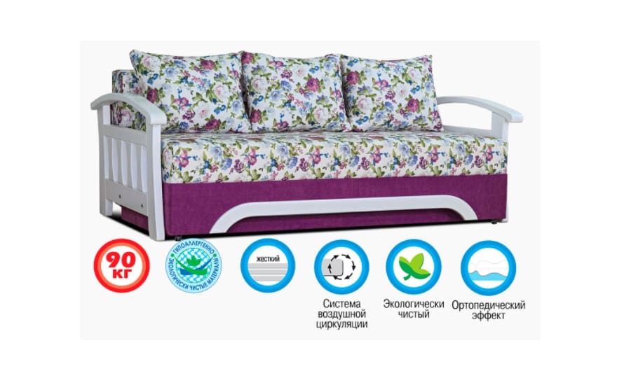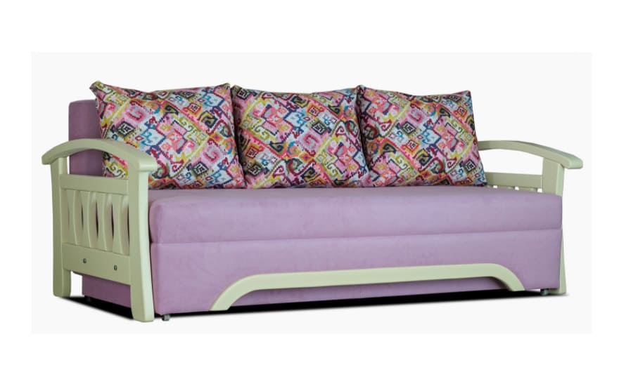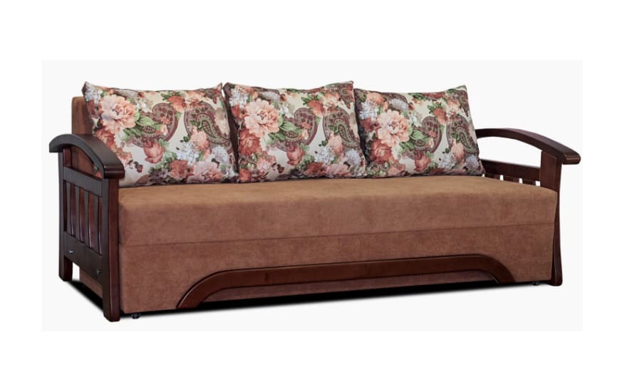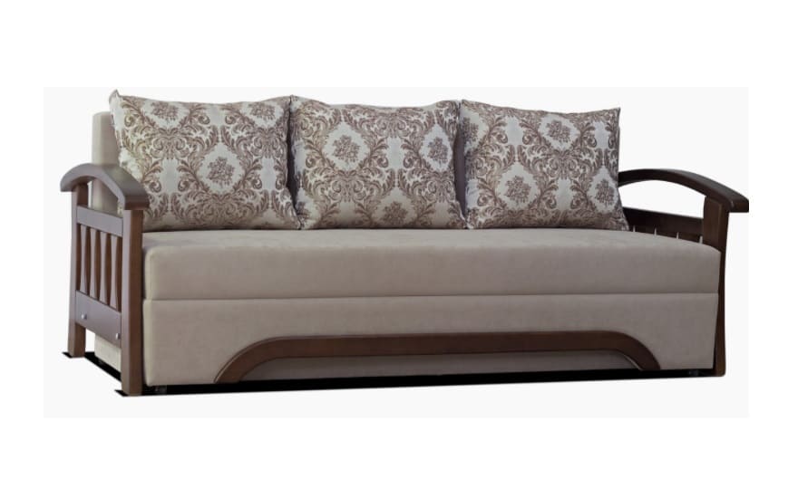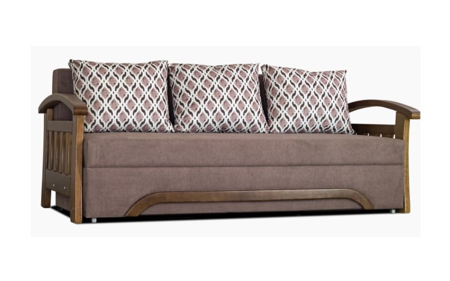 Каркас дивана виконаний в поєднанні бруса хвойних порід, ДСП і ДВП, що гарантує зносостійкість і довговічність.