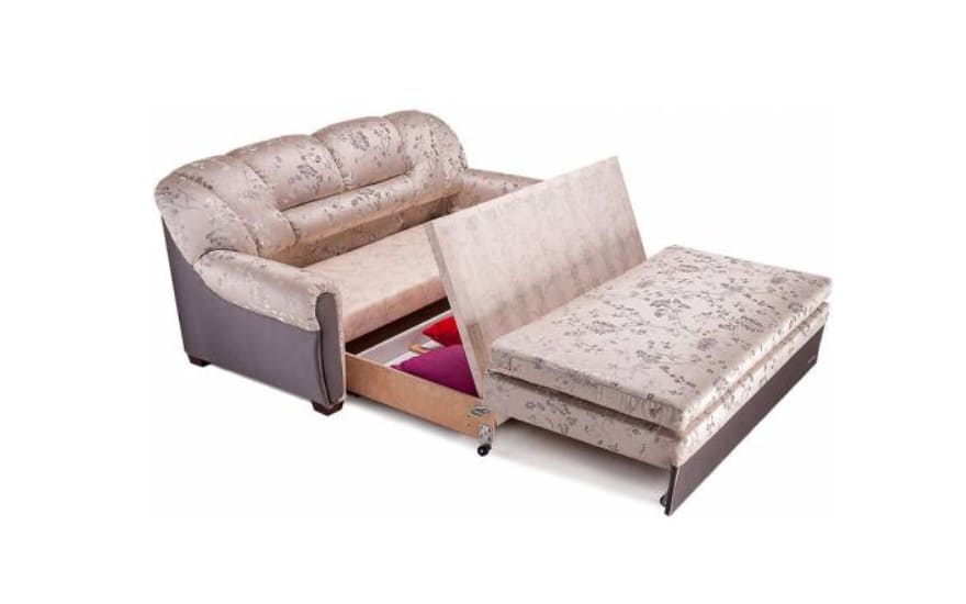 Трансформація відбувається в 2 простi дії - необхідно легко потягнути за нижню частину дивана, після чого вона викотиться, утворюючи робоче положення. Залишиться тільки відкинути подушку на місце, що звільнилося. В результаті виходить комфортне та рівне спальне місце.