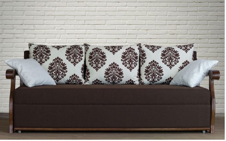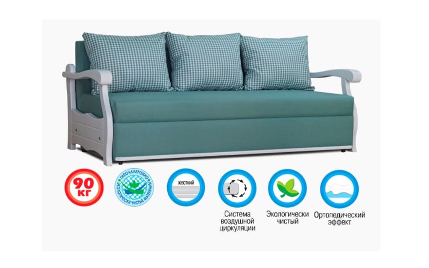 Каркас дивана виконаний в поєднанні бруса хвойних порід, ДСП і ДВП, що гарантує зносостійкість і довговічність.