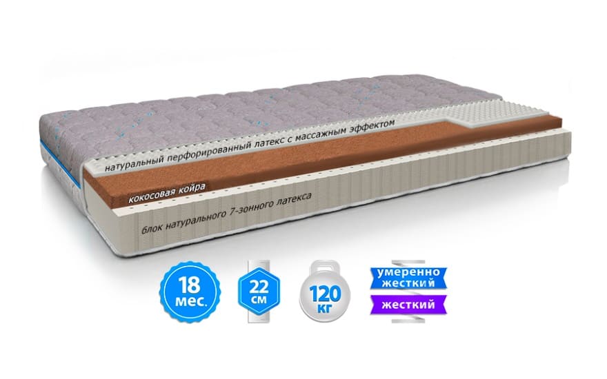 Латексована кокосова койра - натруальний природний матеріал, що володіє еластичністю і повітропроникністю, характеризується довговічністю, стійкістю до деформацій і високих навантажень. Використовується для збільшення жорсткості поверхні матраца.