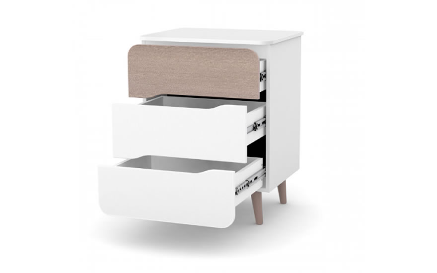 Функціональний комод Сідней з 3-ма висувними шухдядами — незамінна річ в спальні малюка з перших днів життя. А оригінальний дизайн комода і приємні пастельні кольори покриття відразу притягують до нього увагу.
