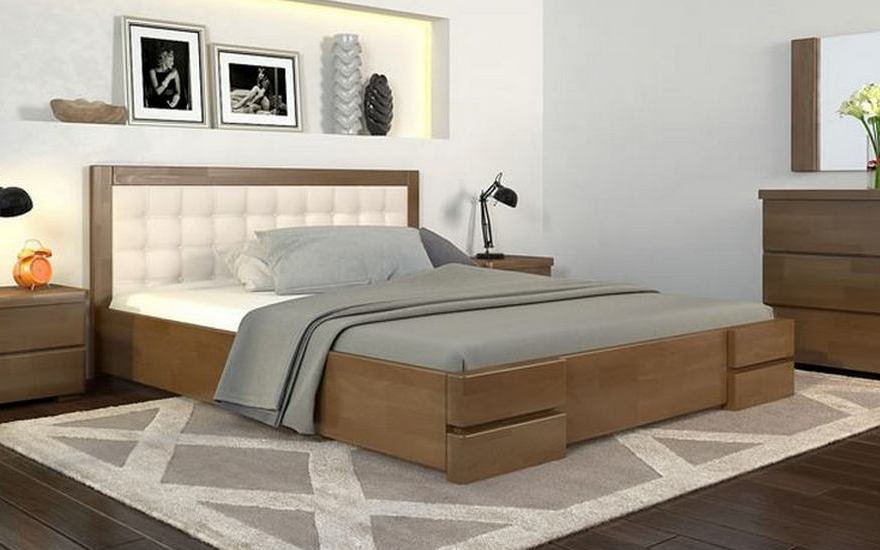 Фабрика виробник ліжок із дерева з мякою спинкою Woodsoft