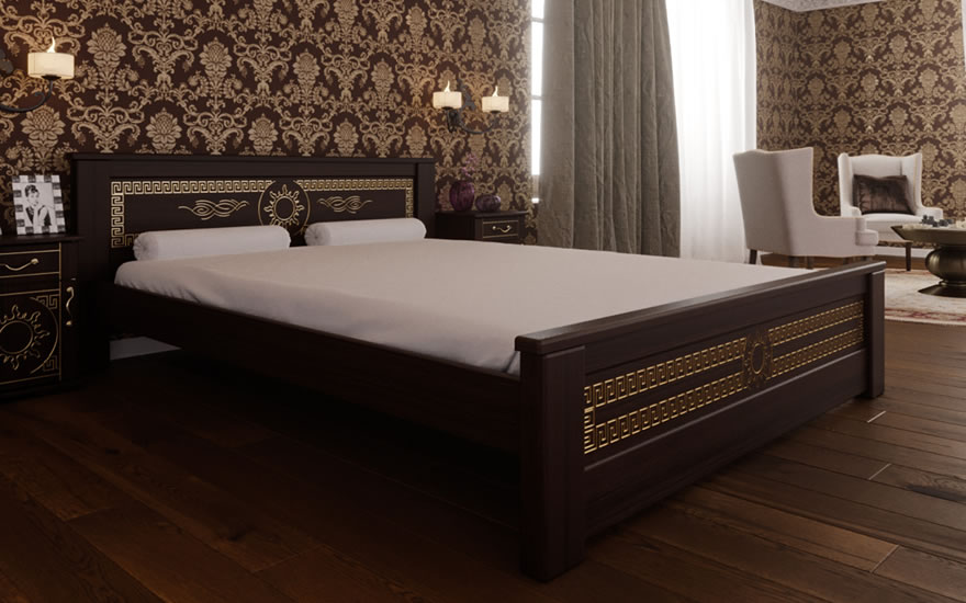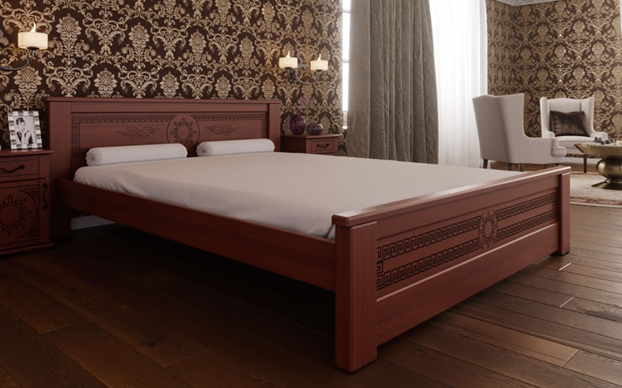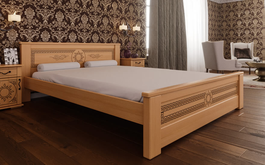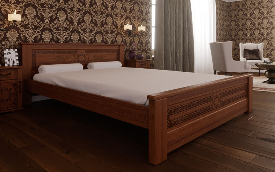• Ліжко "Еліт Вільха" - чудове ліжко, з прямими лініями ізголів’я і ізніжжя і античним малюнком різьблення на них.