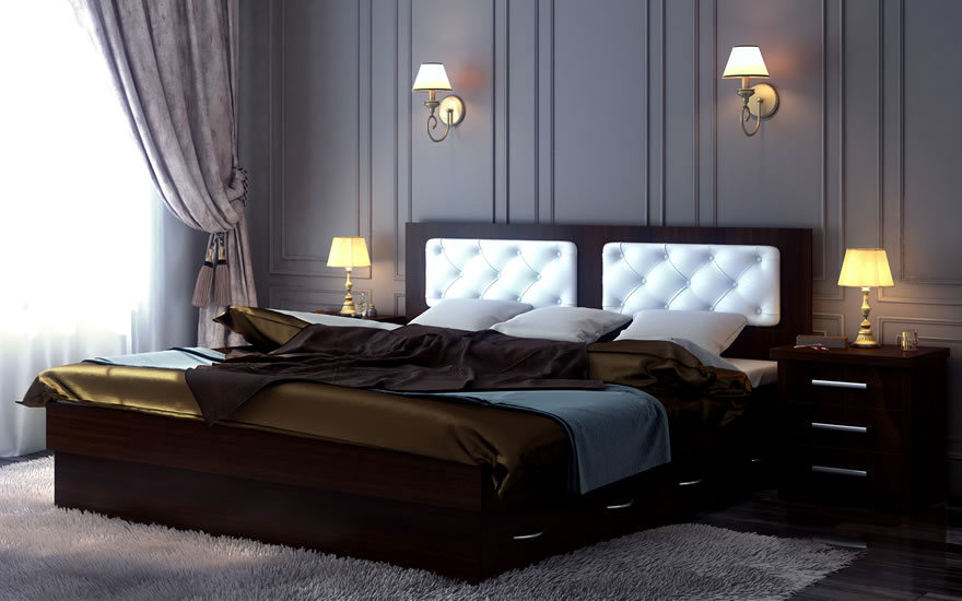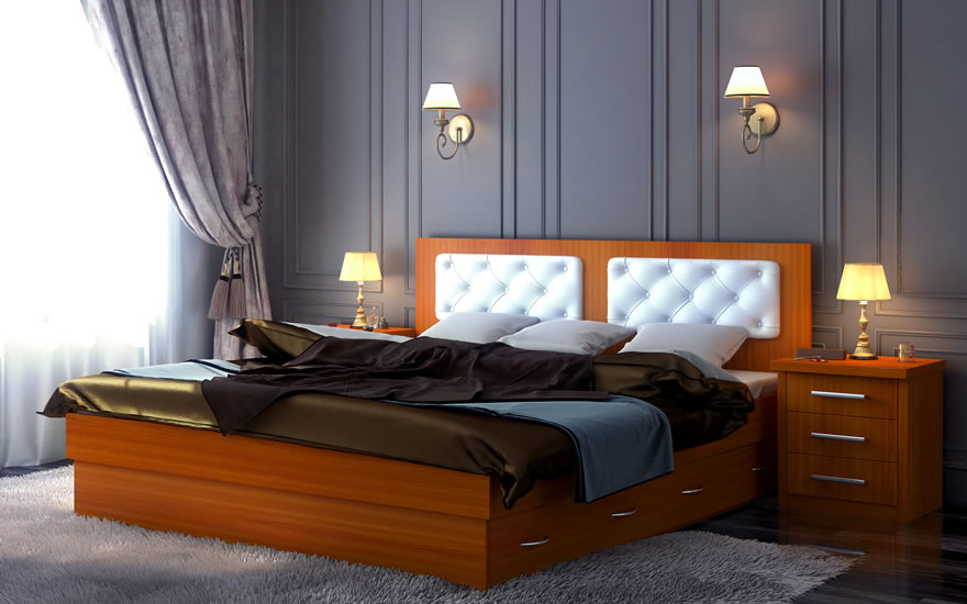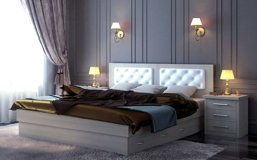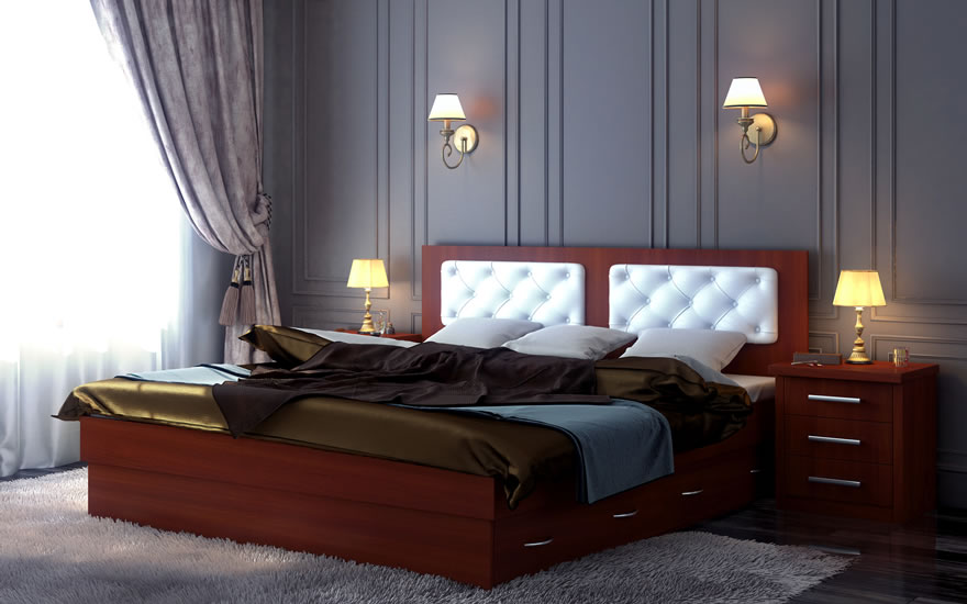 У ліжку є спеціальні підкатні шухляди, в яких зручно зберігати безліч необхідних домашніх речей. Це особливо актуально для спальних кімнат невеликого розміру.