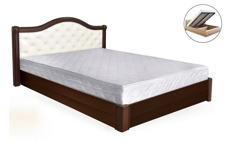 • Дерев'яне ліжко "Катерина Сосна з механізмом" - розкішне, ліжко з чудовим фігурним ізголів'ям. М'яка вставка зі штучної шкіри з ефектним стьобані додає ліжка вишуканості.