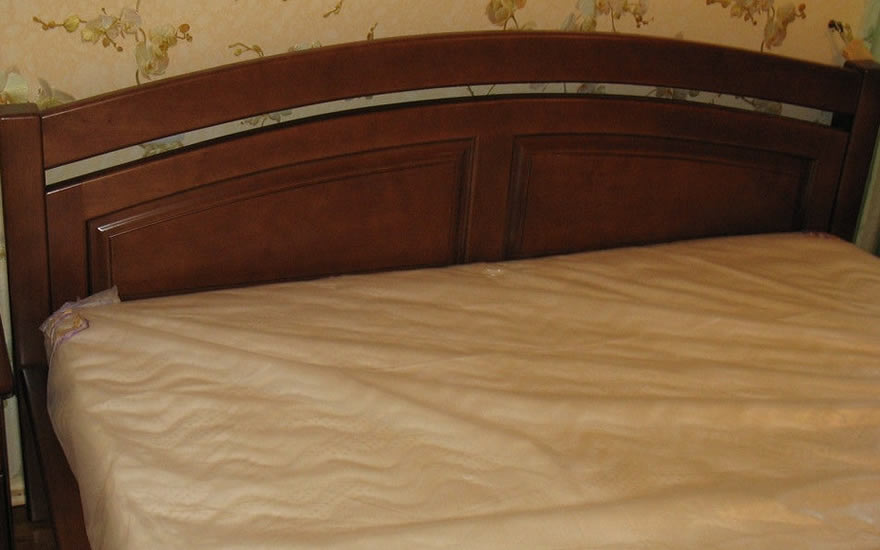 Ліжко виготовлено з натурального дерева: каркас, узголів'я і узніжжя - з масиву вільхи