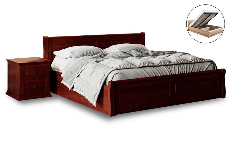 • Лана з підйомним механізмом ідеально підійде для створення інтер'єру спальні в стриманому класичному стилі, а широкий рарзмерний ряд і безліч варіантів колірного виконання збільшують можливості її використання і реалізацію будь-яких дизайнерських ідей. Ліжко виготовлено з натурального дерева, масиву ясеня.