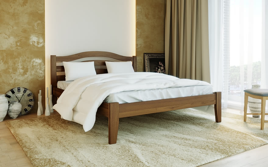 • Дерев'яне ліжко "Афіна Нова" виготовлене з масиву бука, покривається гіпоалергенним лаком італійського виробництва. Досить високе узголів'я ліжка з трьох широких, плавно вигнутих планок надає ліжку грунтовність, не позбавляючи при цьому витонченості.