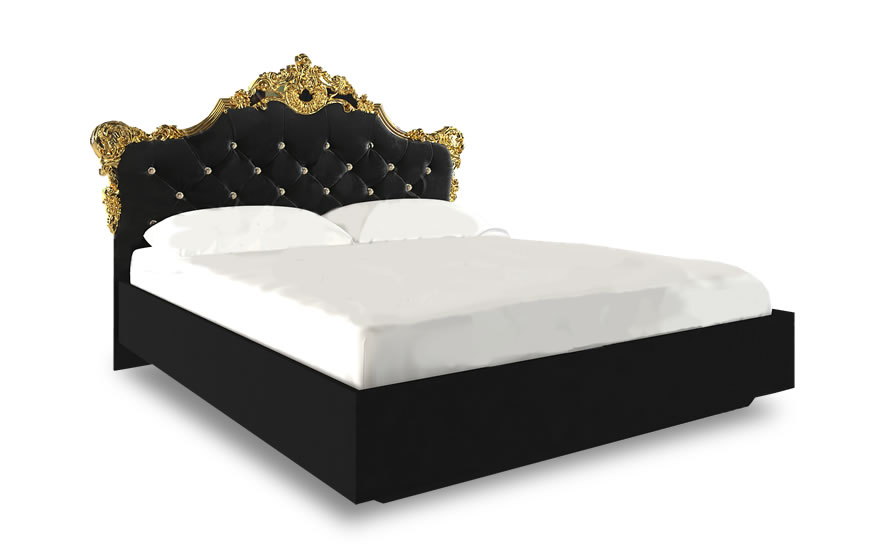 Ліжко Дженніфер 160 см, м'яка спинка, з каркасом, Глянець Чорний