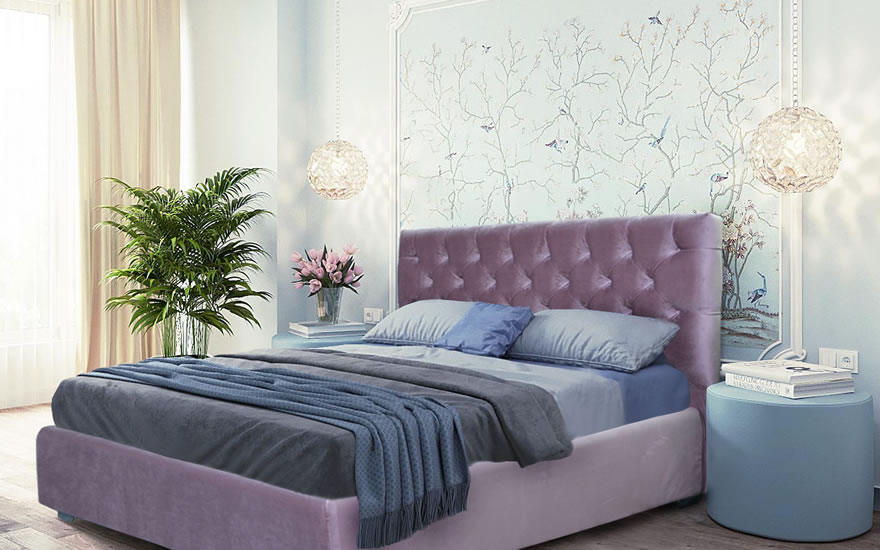 Синій колір в обстановці спальні