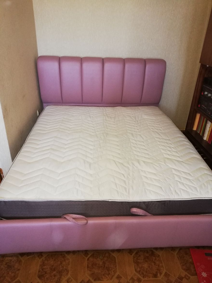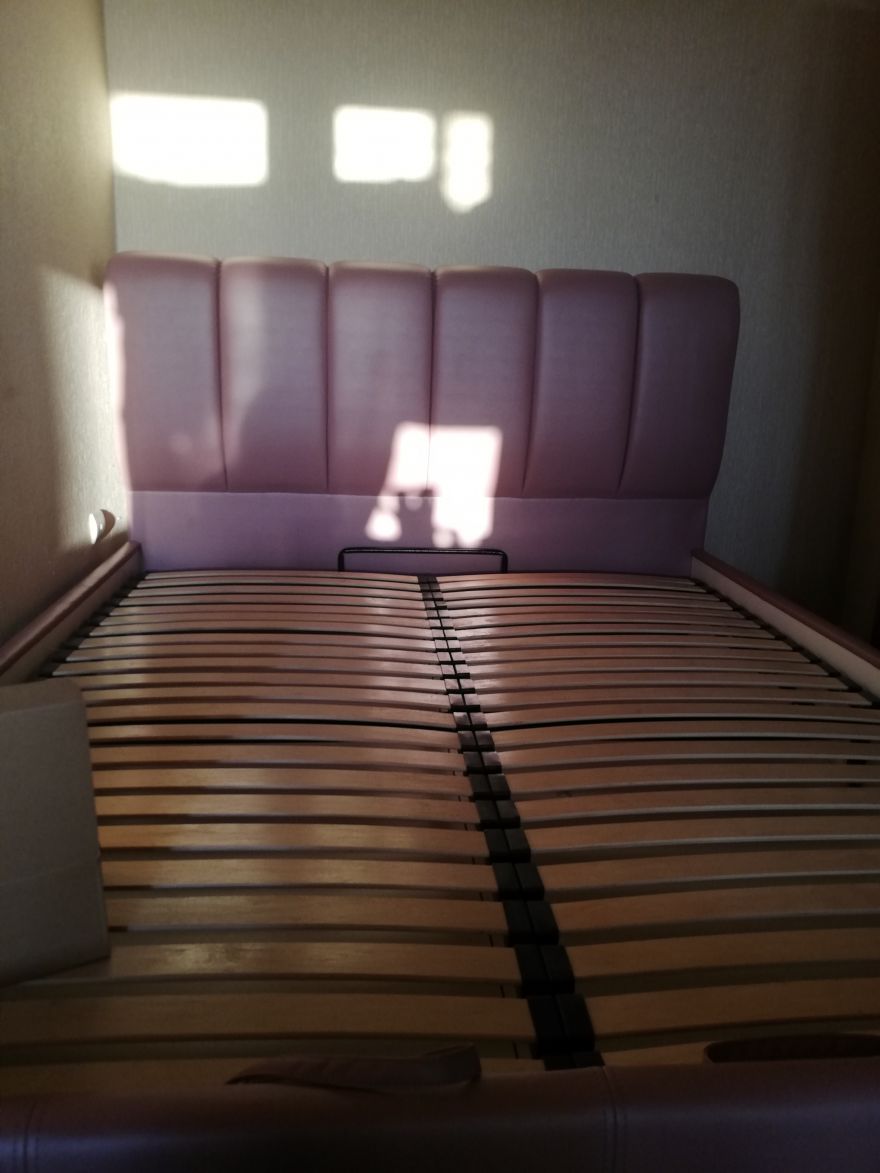 Привезли кровать под подъезд. Цвет кровати немного отличается ,от фото, но это не испортило ее. В целом кровать удобная и очень функциональная. Подъемная рама легкая и бесшумная, и очень вместительная. Основа кровати сделана из металла и ряда поперечных планок. Изголовье мягкое и объемное. Нам с женой очень нравиться кровать.