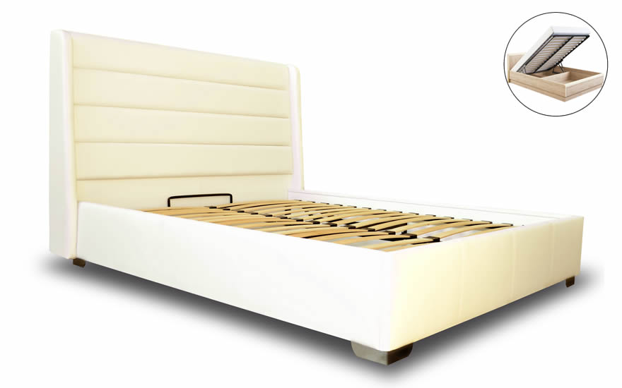 Кровать выполнена из качественного кожзама, ни одной царапинки. Подъемная рама легкая и бесшумная, короб вместительный. Каркас прочный металлический. Я о такой кровати мечтала! Теперь она у меня дома! Очень довольна!