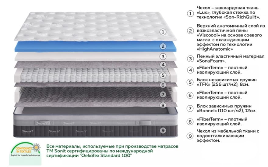 Верхнім шаром наповнення матраца служить анатомічна в'язкоеластична піна "Viscool" на основі соєвої олії з охолоджуючим ефектом.