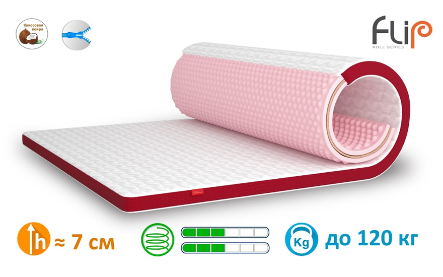 • "Flip Granat Cocos" - тонкий безпружинний матрац з однаковою, середньої жорсткістю сторін.