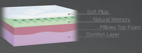 Піна Memory Foam - матеріал, що містить комірки з «пам'яттю», реагує на температуру і вагу людини, в точності повторюючи форму тіла. Використання такої піни в два рази знижує тиск голови, стегон, плечей, колін і стоп. Рекомендується експлуатувати в приміщенні з темературою не менше 20С.