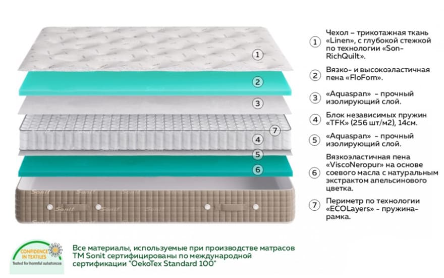 Верхнім шаром наповнення матраца служить в'язко-еластична піна "FloFoam" (Бельгія).