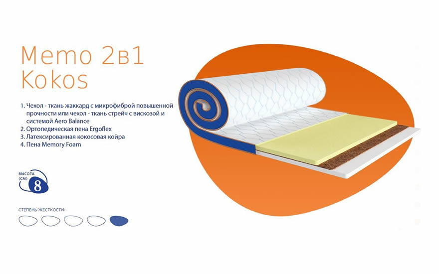 Склад Міні-матрац Memo 2в1 Kokos (Мемо 2в1 Кокос) Жаккард