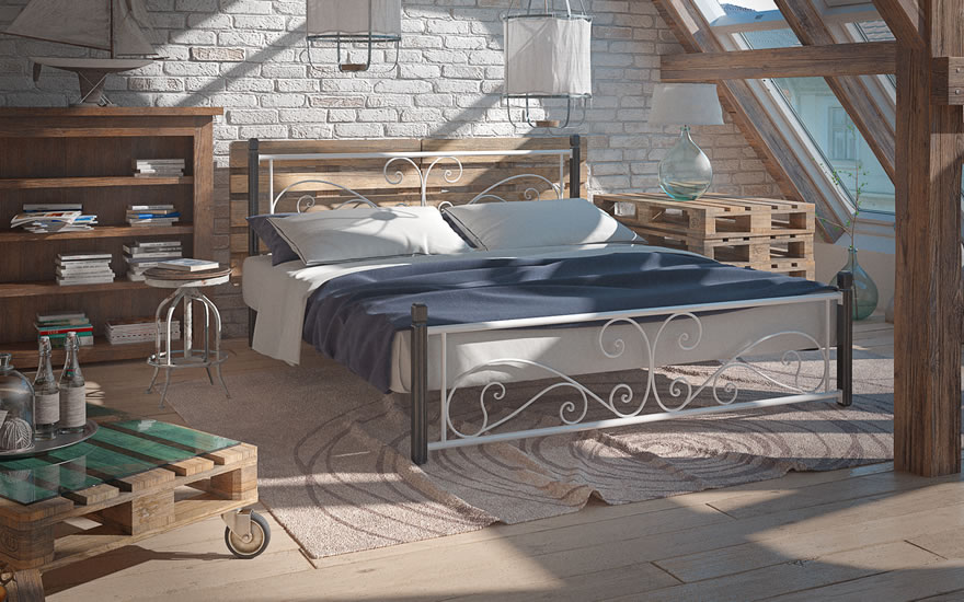 • Металеве двоспальне ліжко Нарцис об'єднує в собі витонченість металу і красу і затишок натурального дерева. Прості, елегантні лінії узголів'я та ізножья пом'якшуються легкими віньєтками з металевих прутів. Дерев'яні різьблені стійки самі по собі прикрашають ліжко, а також надійно підтримують каркас.
