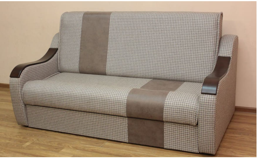 Боковини дивана декоровані дерев'яними підлокітниками-накладками.