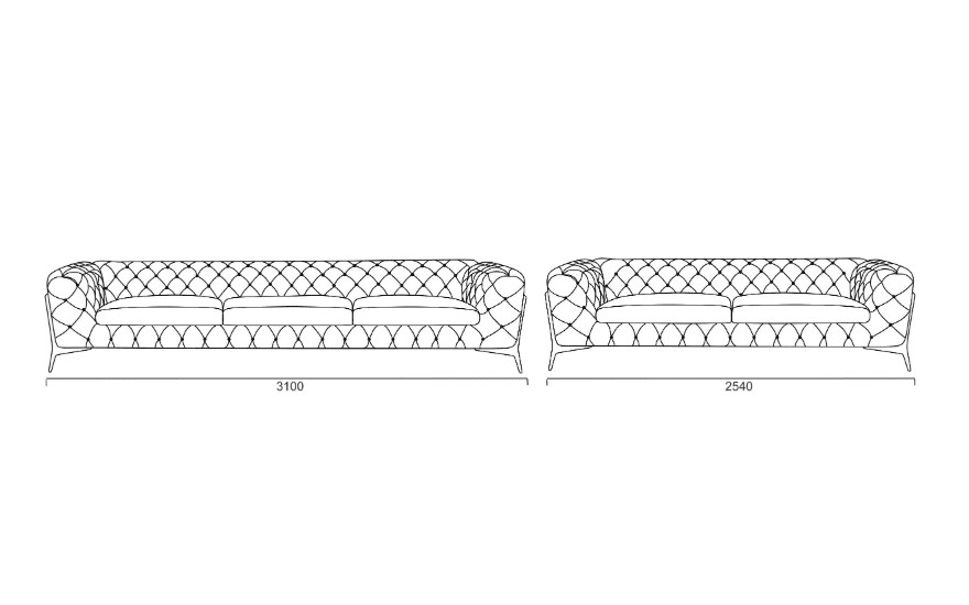 Диван декорований студійної піковкою в стилі "капітоне", що додає йому особливого шарму, об'ємності і м'якості.